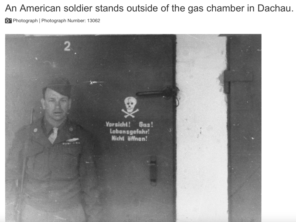 Regarding the Dachau camp gas chamber narrative, there are some interesting issues. The film “Nazi Concentration and Prison Camps,” shown at the Nuremberg trials as evidence, claims that ostensible de-lousing chambers for clothing were where prisoners at Dachau “had been suffocated in a lethal gas chamber” (watch the vid here from 45:08). The issue is that these were four clearly marked fumigation rooms, as disinfestation was part of the typical protocol (even according to survivors — start this video at 8:06) upon entering camps.