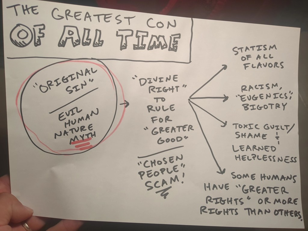 Real love gives someone a choice. It doesn’t say “choose me or die.” I peacefully reject this fictional Jewish supremacist character as my “king.” I am a live-and-let-live, non-violent individual. According to this religion: too bad, so sad, my blood must be spilled. This is exactly the same message the religion of statism puts forth, often directly referencing Judaism, Islam, Christianity as so-called justification for statist massacres and wars.