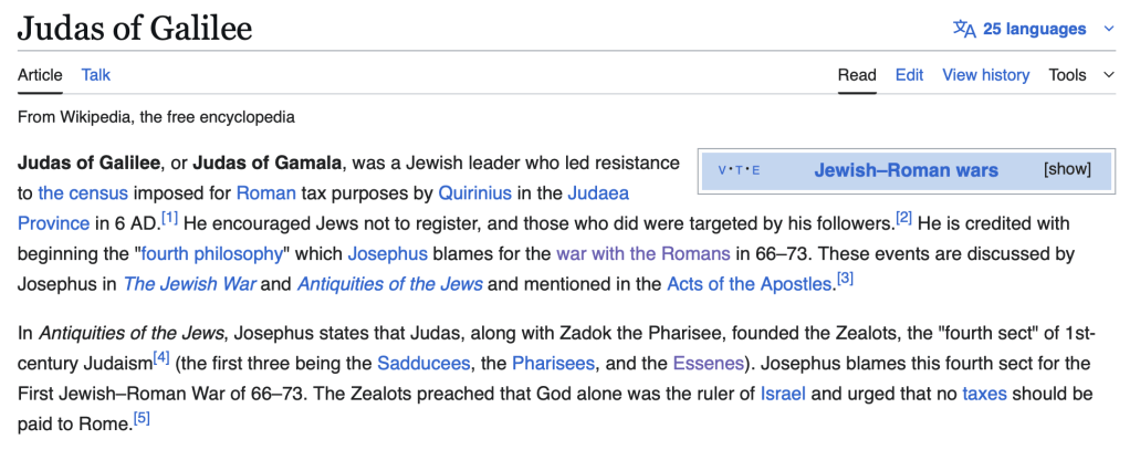 Let’s start by talking about the 1st-century insurrectionist Judas of Galilee, this will illuminate a lot of things.